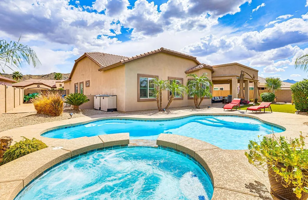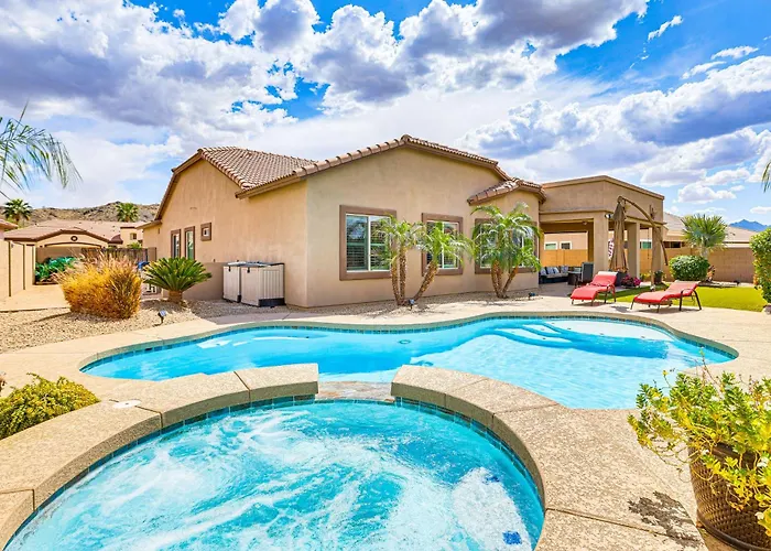 De 4-slaapkamer Backyard Oasis With Fire Pit Laveen Village Retreat Phoenix villa is op 10 minuten rijafstand vanaf Southern Ridge Golf Club gesitueerd en biedt gasten een bubbelbad voor een meer ontspannen verblijf. Dit vakantiehuis heeft een patio en ligt binnen 2 km van Cesar Chavez Park.